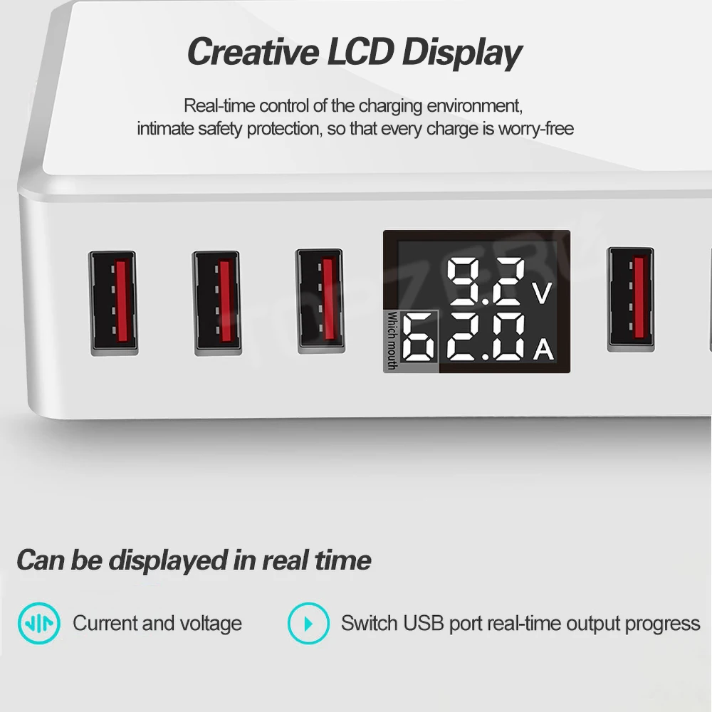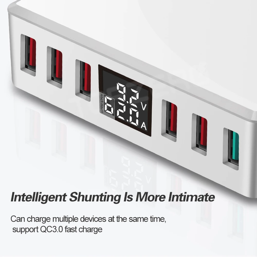 #phone #charger #ports #charging #smart #digital #display #multi #charger #station #travel #quick #charger. QC 3.0 USB Phone Charger 6 Ports Fast Charging Smart LCD Digital Display Multi USB Charger Hub Station Travel Quick Charger.